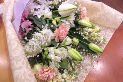 演壇花と花束をお届け。
