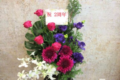 ステージ上にはピアノ横にピンクの濃淡のスタンド花♪