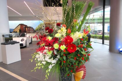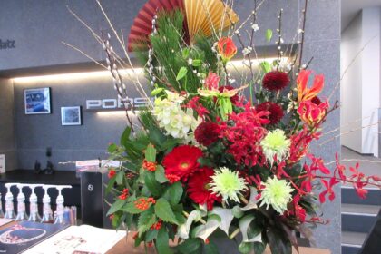 和風過ぎずお正月らしく、ポルシェカラーの赤、白メインで