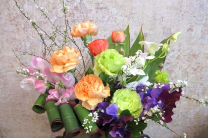 大きめ花材で華やかに。