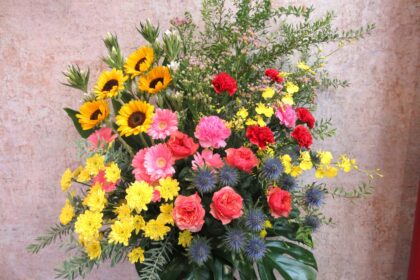 新盆のお供えにあちらこちらにアレンジメントをお届け。